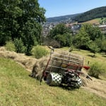 Auf der Galegge versuchen wir mit einer angepassten Mechanisierung zu wirtschaften. Für einen Teil der Arbeiten werden Maschinen ausgeliehen oder einem sog. Lohnunternehmer vergeben wie Getreideernte, Güllen oder Kompost ausbringen.